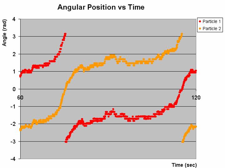 Figure 1.2.1 - Angle versus time for the two particles in a Planar-2 dust