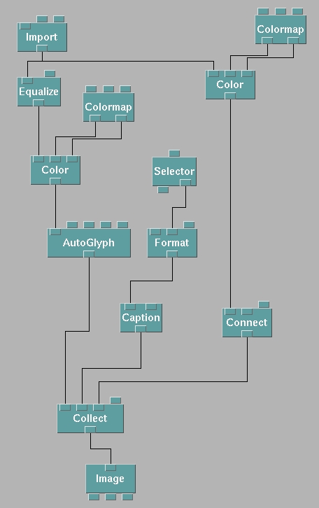 To create a visualization in OpenDX, a general (.general) file for the data explorer was created. The general file is necessary because it allows OpenDX to know where and how to prompt for the dataset. The script for the general file is as follows: