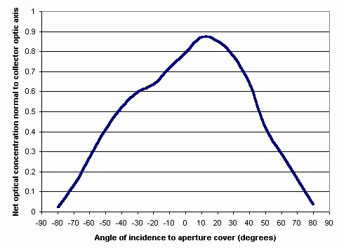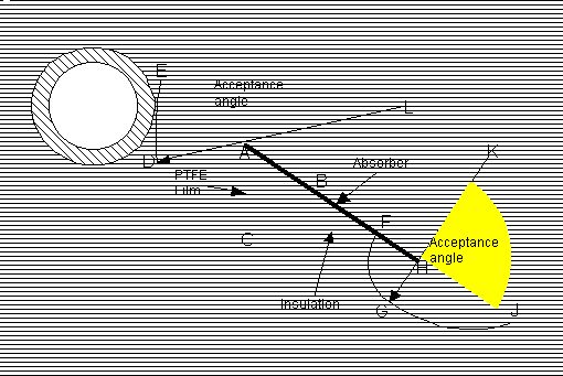 Research @ the Solar Energy GroupAdvanced design of domestic hot water heatingThis work is in collaboration with Prof Graham Morrison of the School of Mechanical and Manufacturing Engineering University of New South Wales. Current solar water heaters overproduce slightly in summer and have poor performance in winter at the time of maximum load. They use an expensive absorber plate over the entire absorbing aperture of the collector and fail to use the backside of the absorber. They often have under insulated tanks and are not optimised as integrated systems. A design approach is described here to use existing commercial flat plat absorber and tank components in a new way to maximise solar contribution and minimise material usage in the construction of the system. The design criterion used is not maximum peak efficiency, but minimum annual backup energy supplied to the system to meet an annual load. This corresponds to meeting a minimum greenhouse emissions requirement in both invested pollution during manufacture and pollution from backup energy supplied. Two new designs were developed which allow the solar fraction of systems to rise to approximately 80-90% in Sydney using a standard model of family usage specified in Australian Standard AS4234. Pollution from fuel use drops to as little as 40% of that of conventional solar systems. These new designs use one absorber plate instead of two and a lighter tank. Comparisons of solar fraction are offered for a range of international sites. An important insight is that with such a performance optimised system, the ultimate solar fraction is limited by long duration cloud cover at the site of installation and making the system larger only increases dumped energy, not utilisable energy. Technical efficiency improvements only reduce system area. Solar radiation is distributed on both sides of the plate to reduce material usage. In addressing the depth of the panel required to fit the reflector under the absorber plate it became clear that, in a conventional flat plate thermosyphon system with an external horizontal tank, the major perceived bulk of the system on the roof is the tank, not the panels. Hence, if the new panel system could hide the tank from view, the overall appearance might be improved rather than degraded. The maximum bulk that was acceptable appeared to be a system as schematically illustrated in Figure 1, where the collector cover slopes down from the top of the horizontal tank nearly to a point, providing a slender triangular cross-section to the eye from the side, and a unified black appearance from the front. The single absorber plate is arranged to be just below the transparent cover in a location which allows space for the reflectors to introduce solar radiation to the underside of the panel. The position chosen was achieved by numerical optimisation based upon minimum backup energy supplied to the system on an annual basis using a model based upon the typical usage of a family of four in Sydney. The design of the reflectors was based upon standard non-imaging curvature formation techniques, but angles of acceptance were chosen by numerical optimisation (See Fig. 2). In order to maximise available aperture, the plate had to be positioned away from the top and bottom edges of the aperture and reflectors were needed at both the top and bottom ends. The bottom reflector is designed in a similar manner, with a circular section FG and a parabolic section GJ centred on point H with optic axis aimed approximately at the equinox solar position KH. The exact angle of this optic axis and the extension distance of HJ are variables, which were refined during numerical optimisation. A winter bias is needed but the seasonal bias solutions contained in Rabl (1976), Mills and Guitronich (1978), Mills and Guitronich, (1979), and Mills, Monger and Morrison (1994) all rely upon the inclination of the collector aperture toward the solstice which is intended to be emphasised in performance. However, in a slim-line design this is difficult to achieve for the case of winter bias, where the aperture should point toward the low winter sun. The approach in this design is to use the front reflector section as a seasonally variable optical element, which the total acceptance angle is approximately 90° as shown in Fig. 2. For a 25° roof in Sydney the collector aperture as defined by the cover glass points approximately to the equinox position and would not deliver seasonal bias if a conventional receiver were underneath. However, the front reflector section only operates during the months on the winter side of equinox. This reflector provides the necessary asymmetry and reduces dumped energy in the summer months. Figure 3 shows optical collection as a function of incident ray angle. The increased collection in winter deviating from the standard cosine response is due to the front reflector. Table 1 summarises the performance of these systems as modelled for Sydney, and this is compared to a conventional two panel thermosyphon system. It is clear that comparatively low levels of backup energy and pollution are achievable. References:Mills D.R. and Giutronich J.E. (1978), Ideal prism solar concentrators, Solar Energy 21, 423-430. Mills D.R. and Giutronich J.E. (1979), Symmetrical and assymetrical ideal cylindrical radiation transformers and concentrators, J. Optical Society of America 69 (2), 325-328. Mills D.R., Monger A., and Morrison G.L. (1994), Comparison of fixed asymmetrical and symetrical reflectors for evacuated tube solar receivers, Solar Energy 53 (1), 91-104. Mills D. and G.L. Morrison (2001), Optimisation of Minimum Backup Solar Water Heating System. Paper submitted to ISES Solar World Congress, Adelaide, Australia. Rabl A. (1976), Comparison of solar concentrators, Solar Energy 18 (2), 93-111. |