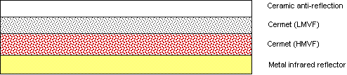 Research @ the Solar Energy GroupSputtered Solar Absorbing Coatings1. Solar selective absorbing coatingsAll bodies emit thermal radiation. An ideal solar selective surface absorbs most of incident solar radiation while simultaneously suppressing emittance itself. Commonly quoted parameters of performance are solar absorptance and thermal emittance. Most solar selective coatings use metal-dielectric composites, known as cermets, as the absorber of solar energy. Electroplated black chromium is most popular solar selective absorber. Nicked-pigmented anodic Al2O3 solar absorber is another popular solar selective absorber. The costs of the production of these two kinds of solar coatings are low, so they are widely used in flat plate solar collectors for solar hot water application. However the emittance of both coatings is high, around 0.1 - 0.2 at 100°C. 2. Graded SS-C cermet solar coatingsMagnetron sputtering technology has also been used for the deposition of solar selective absorbing coatings with improved solar performance, in particular, lower emittance and less environmental pollution than electrochemical methods. The School of Physics within the University of Sydney have achieved several innovations of solar selective coatings in the last two decades. Selective surfaces, incorporating DC reactively sputtered stainless steel-carbon (SS-C), were intensively studied in this school during 1970s to 1980s. The all-glass evacuated solar collector tubes, incorporating DC reactively sputtered graded SS-C cermet selective coatings, have been mass-produced in Japan. A solar absorptance of 0.88-0.92 and emittance of 0.05 - 0.07 at 80°C have been archived for mass-produced SS-C cermet solar collector tubes. 3. Graded Al-N cermet solar coatingsReactive sputtered Al-N cermet solar coating was initiated in this school in 1980s. The all-glass evacuated solar collector tubes, incorporating DC reactively sputtered graded Al-N cermet selective coatings, have been mass-produced in China in large capacities, more than 10 million tubes a year in 1999. A solar absorptance of 0.88-0.92 and emittance of 0.06 - 0.10 at 80°C have been archived for mass-produced SS-C cermet solar collector tubes. Cylindrical DC magnetron sputter coater has been used to manufacture economically the SS-C and Al-N cermet solar collector tubes. 4. Graded Mo-Al2O3 cermet solar coatingsGraded Mo-Al2O3 cermet solar collector tubes that were manufactured by Luz Co. Israel, were used for solar thermal power plants constructed in Southern California during 1984 -1990. Nine plants with a total net electricity capacity of 354 MW are under operation to feed electricity in the grid of the regional utility. Mo-Al2O3 cermet solar coatings were deposited by using conventional magnetron sputtering technology. The Mo metal component in the cermet is deposited using DC sputtering and the ceramic component is deposited by RF sputtering. A solar absorptance of 0.96 and emittance of 0.16 at 350°C were archived. 5. Double cermet layer solar coatings - Achieving the highest solar performanceRecently we have made two very significant innovations related to solar selective coatings, double cermet layer structure for achieving the highest solar performance and metal-aluminium nitride (M-AlN) solar selective coatings deposited by a novel two-target DC magnetron sputtering technology for reducing the costs of high-temperature solar coatings. Through fundamental analysis and computer modelling, we have developed a double cermet film structure for solar selective surfaces and achieved theoretically and experimentally better solar performance than surfaces using a homogeneous cermet layer or the conventional graded film structure. In the double cermet layer solar coatings, solar radiation is effectively absorbed internally and by phase interference. This innovation has been patented in Australia, USA and other several countries. A typical double cermet film structure, as schematically shown in Fig. 1, from substrate to surface consists of: