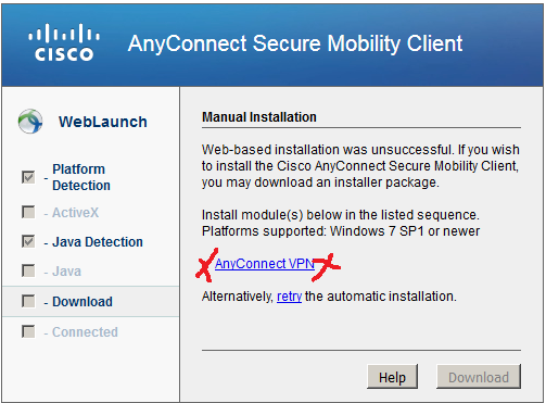 Using Firefox navigate to the latest Cisco AnyConnect (version 4.5.x) download page—