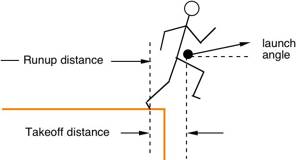 is not the same as a jump on level ground. In the long jump, the jumper needs