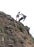 The movie clip here shows a mannequin pushed off the cliff. People donŐt bounce, but they can slide and roll at high speed when impacting the side of a cliff. Movie taken at 300 fps.
